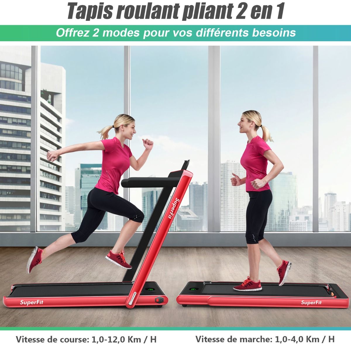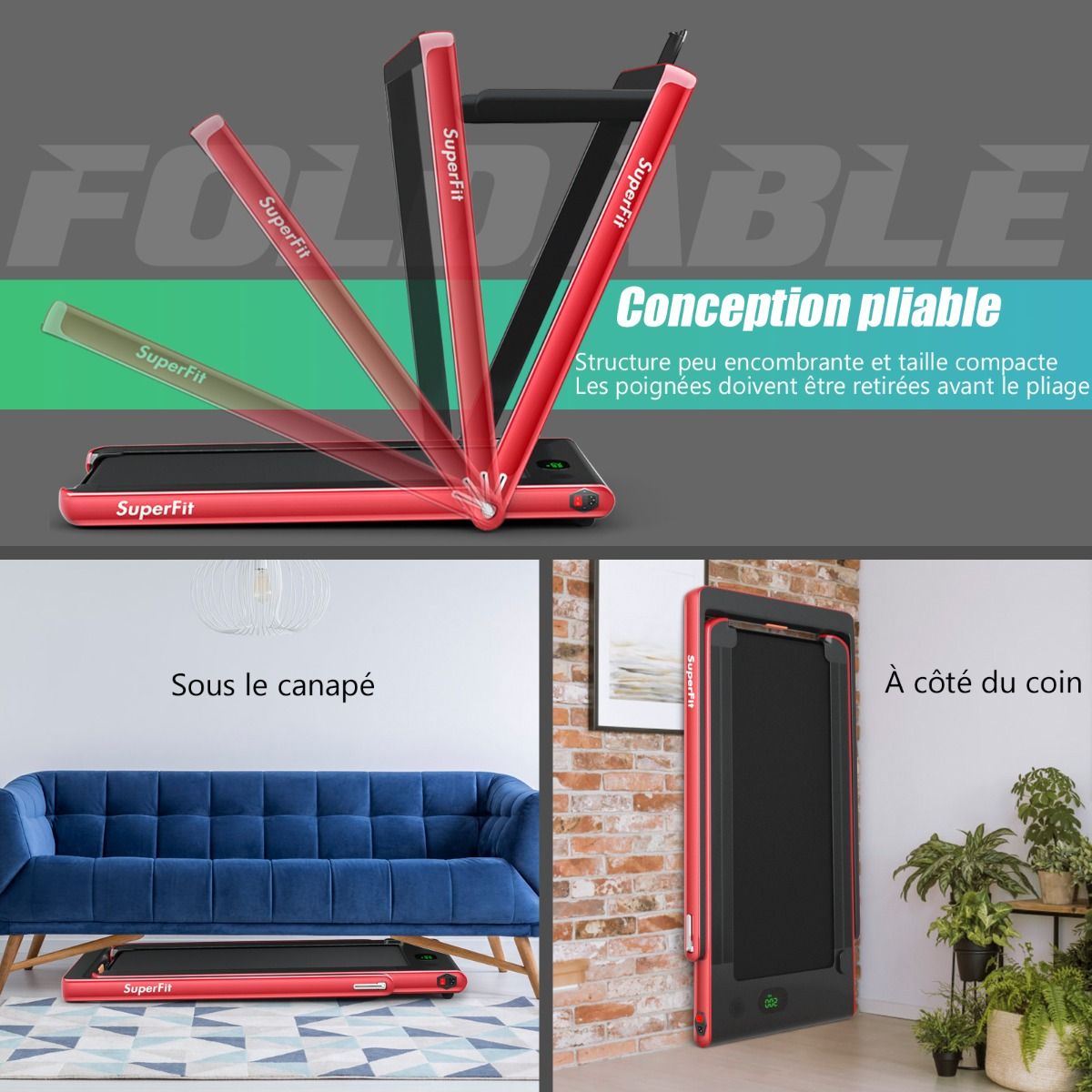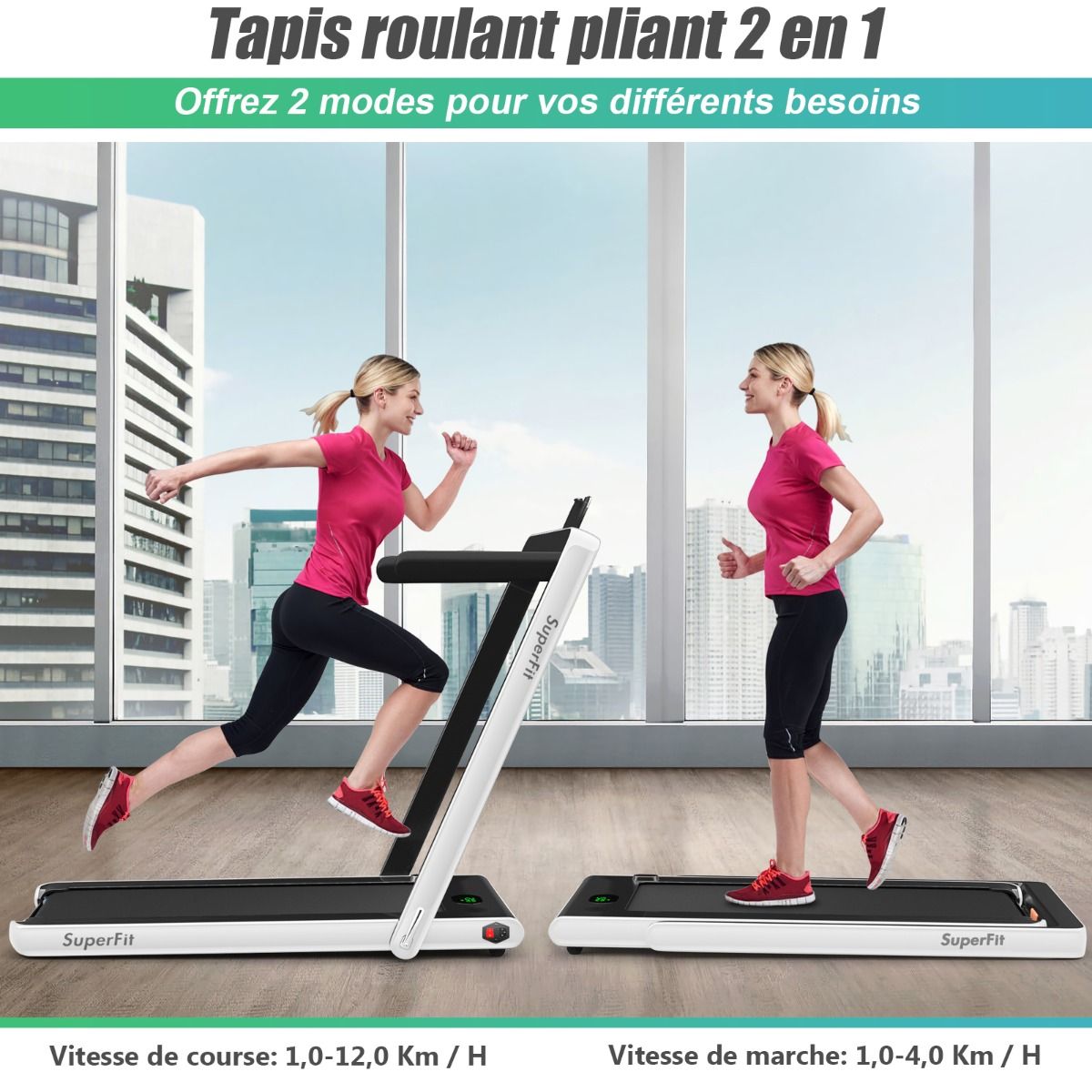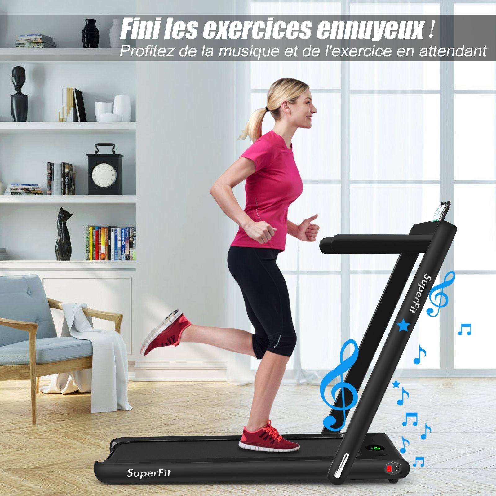 No need to run outdoors in the heat or go to the gym. This folding treadmill is the perfect choice. Sturdy and stable, it features a robust frame and a durable five-layer running belt, ensuring superior performance. The foldable handrails offer two different modes to meet various needs. Whether you're a professional athlete or a beginner, you can find a mode and intensity that suits you. Furthermore, the multi-functional LED display accurately shows your running time, speed, and calorie consumption, allowing you to comprehensively monitor your fitness and conduct targeted training. With this folding treadmill, you can take action now and start a healthier life. Product Features: 2-in-1 folding multi-functional treadmill offering two modes to meet different training needs. With the handrails folded, it can be used as a treadmill. It can be placed under a table, with speeds from 1 to 4 km/h, allowing you to enjoy a more relaxed running experience. With the handrails raised, the running speed ranges from 1 to 12 km/h, perfect for workouts. Quiet Motor and Stable Structure: The treadmill is equipped with a powerful yet quiet 0.75 horsepower motor with an inductor filter. It operates relatively quietly and won't disturb neighbors, making it ideal for office or home use. In addition, the sturdy and durable iron frame provides excellent stability. The multi-layered running belt effectively absorbs impact, ensuring a more comfortable running experience. The high-density textured running belt also provides stronger grip and safety. Bluetooth speaker and LED display: Time, speed, distance traveled, and even calorie consumption are clearly displayed on the LED screen. You can track your progress and fitness status in real time. Running is no longer boring: The treadmill is equipped with Bluetooth technology, allowing you to play your favorite music. Phone holder and easy installation: The phone holder securely and stably holds your phone. This way, you can watch movies or chat with friends while exercising. Furthermore, 95% of the components are pre-installed, making installation simple and quick. Using the remote control, you can quickly adjust the speed and stop the treadmill. Ultra-portable design, easy to store. This treadmill has a compact and foldable design, with folded dimensions of only 132 cm x 70 cm x 12.5 cm (L x W x H), easily stored under the bed or sofa, taking up minimal space. In addition, built-in wheels make moving it even easier and more convenient. Powerful Features: Compact size and foldable design for easy storage; Stable and durable steel frame ensures a long product lifespan; Bluetooth functionality makes running more fun and motivating; Two different modes to meet various situations and needs; Equipped with wheels for easy movement and transport; LED display shows your fitness level and progress accurately in real time; Durable and non-slip running belt designed specifically for running and exercise. Specifications: Colors: Green, White, Black, Red, Gold, Black/Silver, Blue; Material: ABS + Iron; Net Weight: 34.66 kg; Maximum Load Capacity: 120 kg; Unfolded Dimensions: 124.5 x 68.5 x 108.5 cm (L x W x H); Folded Dimensions: 133.5 x 68.5 x 12.5 cm (L x W x H); Walking Speed: 1.0-4.0 km/h; Running Speed: 1.0-12.0 km/h; Peak Motor Power: 0.75 hp; Noise Level: Below 60 dB Running area dimensions: 40 x 100 cm (L x W) Package includes: 1 x 2-in-1 treadmill, 1 x remote control, 1 x phone holder, 1 x instruction manual, 1 x power cord, 1 x safety key
