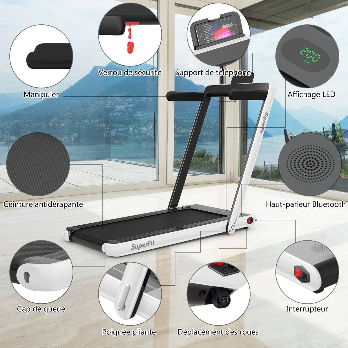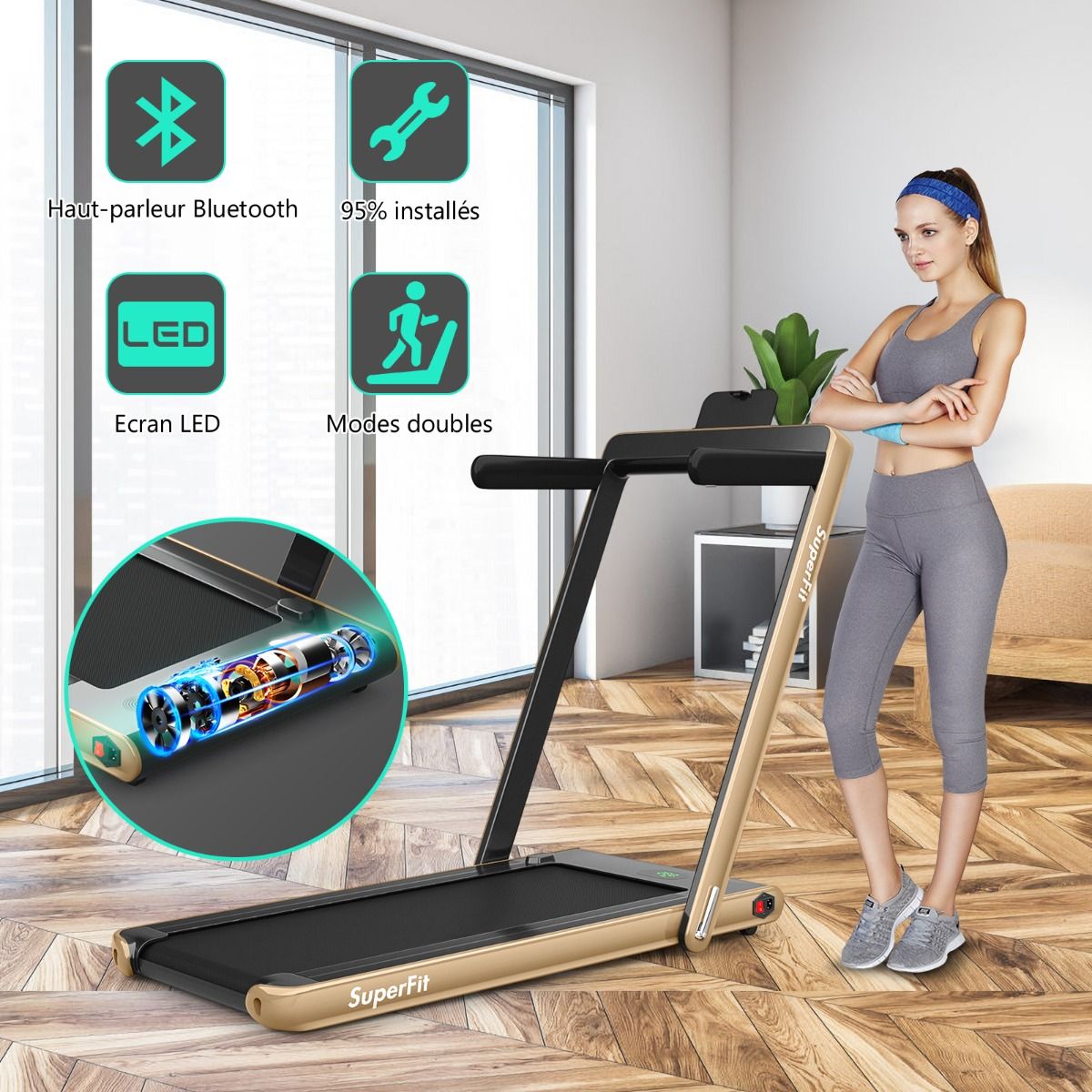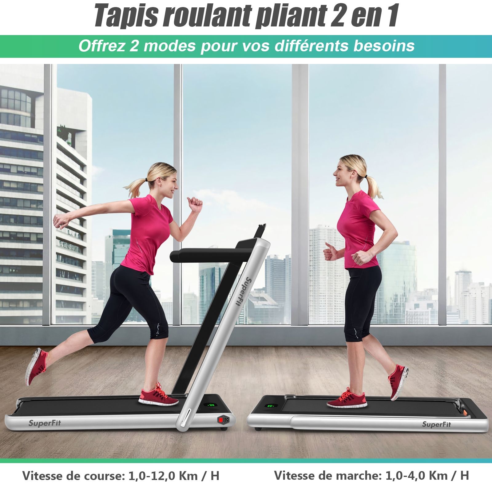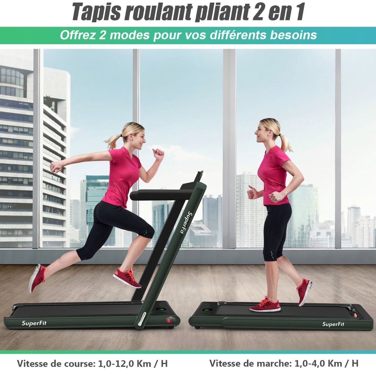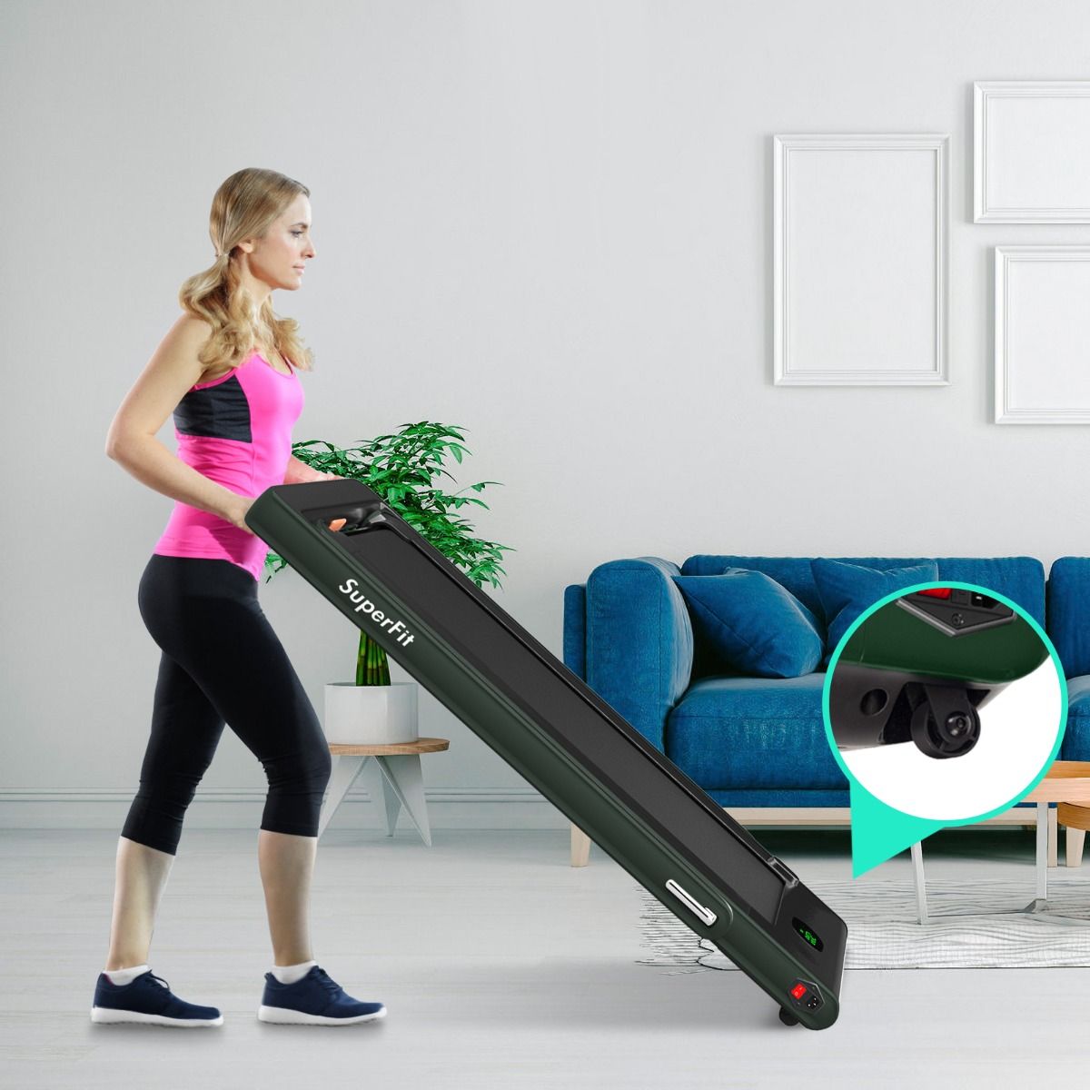 No need to run outdoors in the heat or go to the gym. This folding treadmill is the perfect choice. Sturdy and stable, it features a robust frame and a durable five-layer running belt, ensuring superior performance. The foldable handrails offer two different modes to meet various needs. Whether you're a professional athlete or a beginner, you can find a mode and intensity that suits you. Furthermore, the multi-functional LED display accurately shows your running time, speed, and calorie consumption, allowing you to comprehensively monitor your fitness and conduct targeted training. With this folding treadmill, you can take action now and start a healthier life. Product Features: 2-in-1 folding multi-functional treadmill offering two modes to meet different training needs. With the handrails folded, it can be used as a treadmill. It can be placed under a table, with speeds from 1 to 4 km/h, allowing you to enjoy a more relaxed running experience. With the handrails raised, the running speed ranges from 1 to 12 km/h, perfect for workouts. Quiet Motor and Stable Structure: The treadmill is equipped with a powerful yet quiet 0.75 horsepower motor with an inductor filter. It operates relatively quietly and won't disturb neighbors, making it ideal for office or home use. In addition, the sturdy and durable iron frame provides excellent stability. The multi-layered running belt effectively absorbs impact, ensuring a more comfortable running experience. The high-density textured running belt also provides stronger grip and safety. Bluetooth speaker and LED display: Time, speed, distance traveled, and even calorie consumption are clearly displayed on the LED screen. You can track your progress and fitness status in real time. Running is no longer boring: The treadmill is equipped with Bluetooth technology, allowing you to play your favorite music. Phone holder and easy installation: The phone holder securely and stably holds your phone. This way, you can watch movies or chat with friends while exercising. Furthermore, 95% of the components are pre-installed, making installation simple and quick. Using the remote control, you can quickly adjust the speed and stop the treadmill. Ultra-portable design, easy to store. This treadmill has a compact and foldable design, with folded dimensions of only 132 cm x 70 cm x 12.5 cm (L x W x H), easily stored under the bed or sofa, taking up minimal space. In addition, built-in wheels make moving it even easier and more convenient. Powerful Features: Compact size and foldable design for easy storage; Stable and durable steel frame ensures a long product lifespan; Bluetooth functionality makes running more fun and motivating; Two different modes to meet various situations and needs; Equipped with wheels for easy movement and transport; LED display shows your fitness level and progress accurately in real time; Durable and non-slip running belt designed specifically for running and exercise. Specifications: Colors: Green, White, Black, Red, Gold, Black/Silver, Blue; Material: ABS + Iron; Net Weight: 34.66 kg; Maximum Load Capacity: 120 kg; Unfolded Dimensions: 124.5 x 68.5 x 108.5 cm (L x W x H); Folded Dimensions: 133.5 x 68.5 x 12.5 cm (L x W x H); Walking Speed: 1.0-4.0 km/h; Running Speed: 1.0-12.0 km/h; Peak Motor Power: 0.75 hp; Noise Level: Below 60 dB Running area dimensions: 40 x 100 cm (L x W) Package includes: 1 x 2-in-1 treadmill, 1 x remote control, 1 x phone holder, 1 x instruction manual, 1 x power cord, 1 x safety key