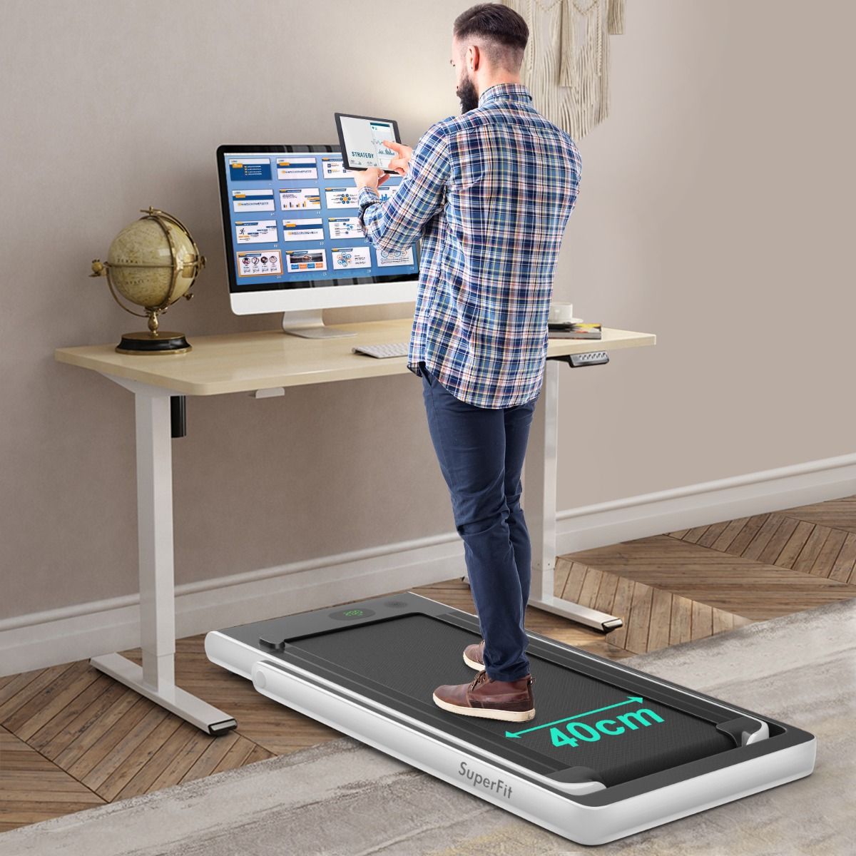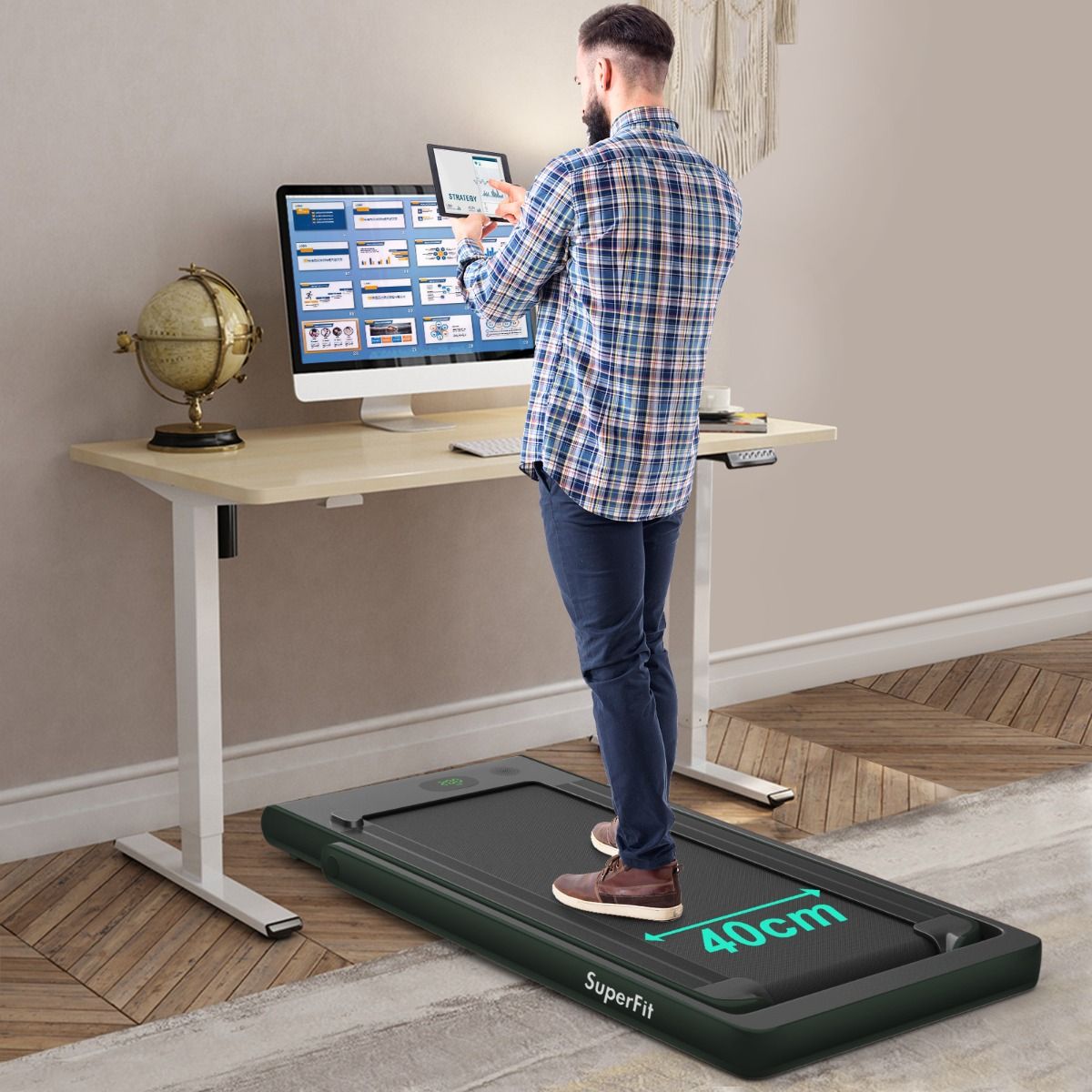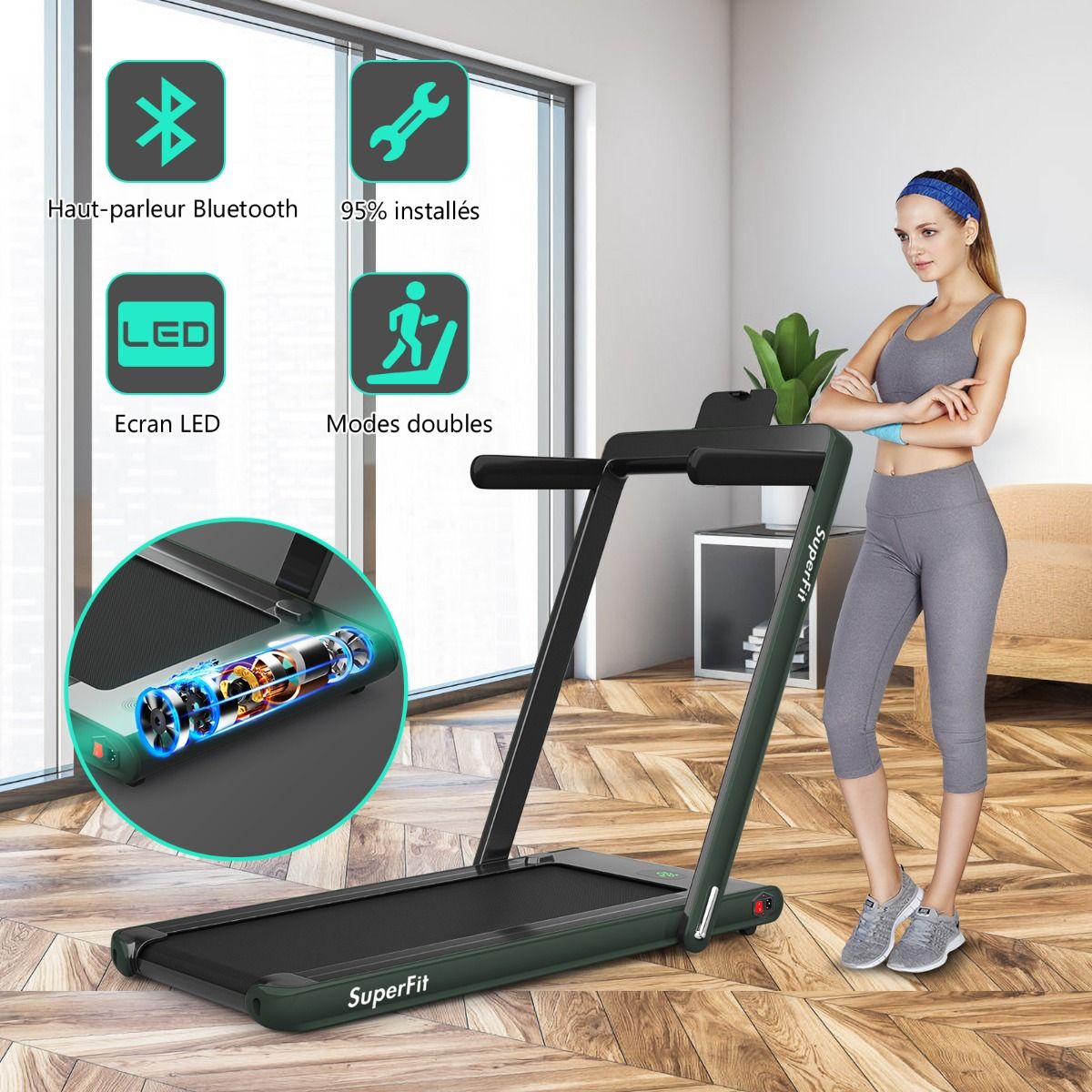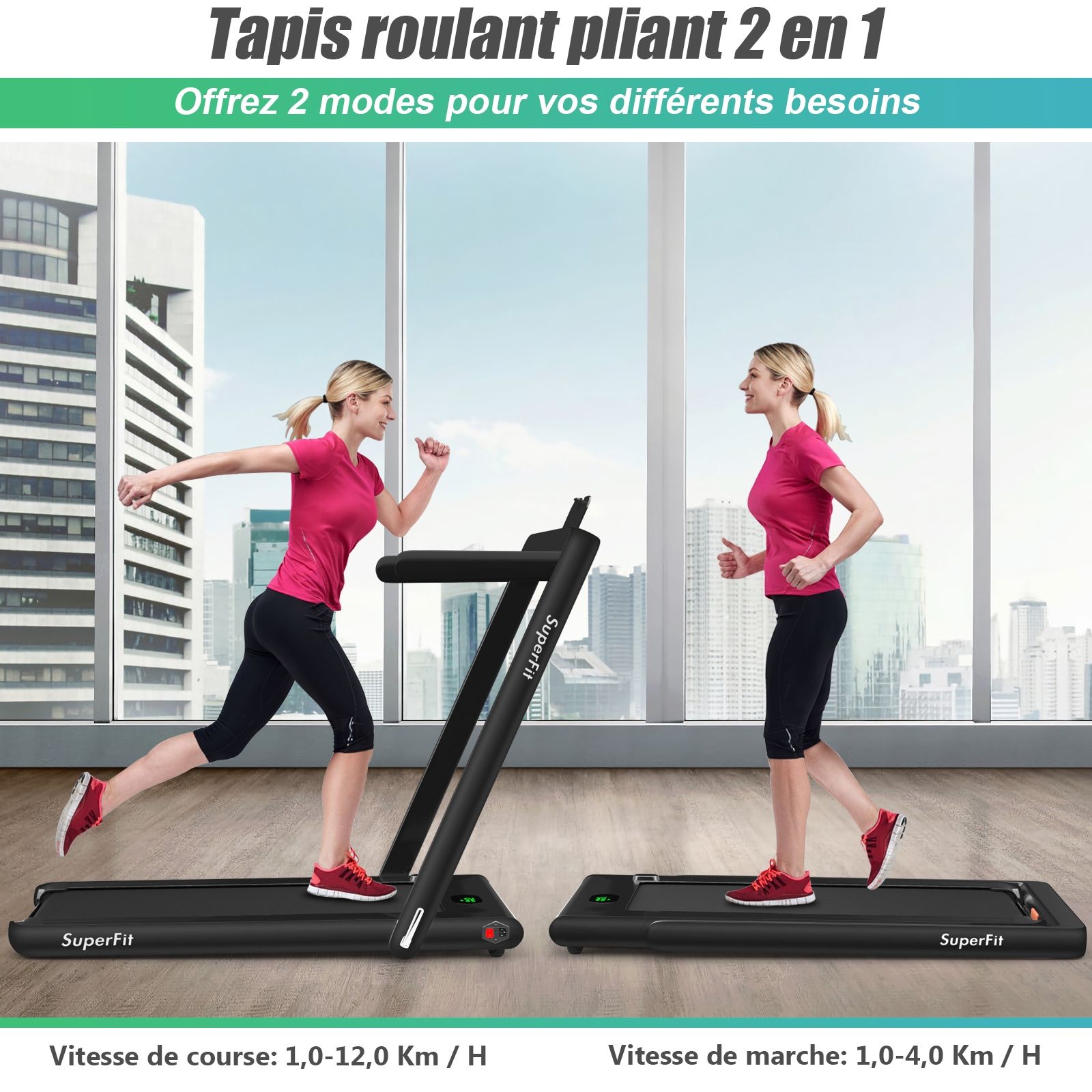 No need to run outdoors in the heat or go to the gym. This folding treadmill is the perfect choice. Sturdy and stable, it features a robust frame and a durable five-layer running belt, ensuring superior performance. The foldable handrails offer two different modes to meet various needs. Whether you're a professional athlete or a beginner, you can find a mode and intensity that suits you. Furthermore, the multi-functional LED display accurately shows your running time, speed, and calorie consumption, allowing you to comprehensively monitor your fitness and conduct targeted training. With this folding treadmill, you can take action now and start a healthier life. Product Features: 2-in-1 folding multi-functional treadmill offering two modes to meet different training needs. With the handrails folded, it can be used as a treadmill. It can be placed under a table, with speeds from 1 to 4 km/h, allowing you to enjoy a more relaxed running experience. With the handrails raised, the running speed ranges from 1 to 12 km/h, perfect for workouts. Quiet Motor and Stable Structure: The treadmill is equipped with a powerful yet quiet 0.75 horsepower motor with an inductor filter. It operates relatively quietly and won't disturb neighbors, making it ideal for office or home use. In addition, the sturdy and durable iron frame provides excellent stability. The multi-layered running belt effectively absorbs impact, ensuring a more comfortable running experience. The high-density textured running belt also provides stronger grip and safety. Bluetooth speaker and LED display: Time, speed, distance traveled, and even calorie consumption are clearly displayed on the LED screen. You can track your progress and fitness status in real time. Running is no longer boring: The treadmill is equipped with Bluetooth technology, allowing you to play your favorite music. Phone holder and easy installation: The phone holder securely and stably holds your phone. This way, you can watch movies or chat with friends while exercising. Furthermore, 95% of the components are pre-installed, making installation simple and quick. Using the remote control, you can quickly adjust the speed and stop the treadmill. Ultra-portable design, easy to store. This treadmill has a compact and foldable design, with folded dimensions of only 132 cm x 70 cm x 12.5 cm (L x W x H), easily stored under the bed or sofa, taking up minimal space. In addition, built-in wheels make moving it even easier and more convenient. Powerful Features: Compact size and foldable design for easy storage; Stable and durable steel frame ensures a long product lifespan; Bluetooth functionality makes running more fun and motivating; Two different modes to meet various situations and needs; Equipped with wheels for easy movement and transport; LED display shows your fitness level and progress accurately in real time; Durable and non-slip running belt designed specifically for running and exercise. Specifications: Colors: Green, White, Black, Red, Gold, Black/Silver, Blue; Material: ABS + Iron; Net Weight: 34.66 kg; Maximum Load Capacity: 120 kg; Unfolded Dimensions: 124.5 x 68.5 x 108.5 cm (L x W x H); Folded Dimensions: 133.5 x 68.5 x 12.5 cm (L x W x H); Walking Speed: 1.0-4.0 km/h; Running Speed: 1.0-12.0 km/h; Peak Motor Power: 0.75 hp; Noise Level: Below 60 dB Running area dimensions: 40 x 100 cm (L x W) Package includes: 1 x 2-in-1 treadmill, 1 x remote control, 1 x phone holder, 1 x instruction manual, 1 x power cord, 1 x safety key