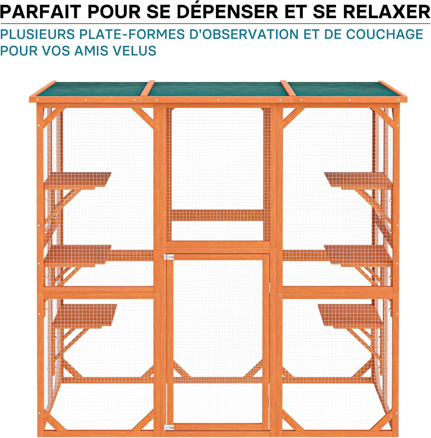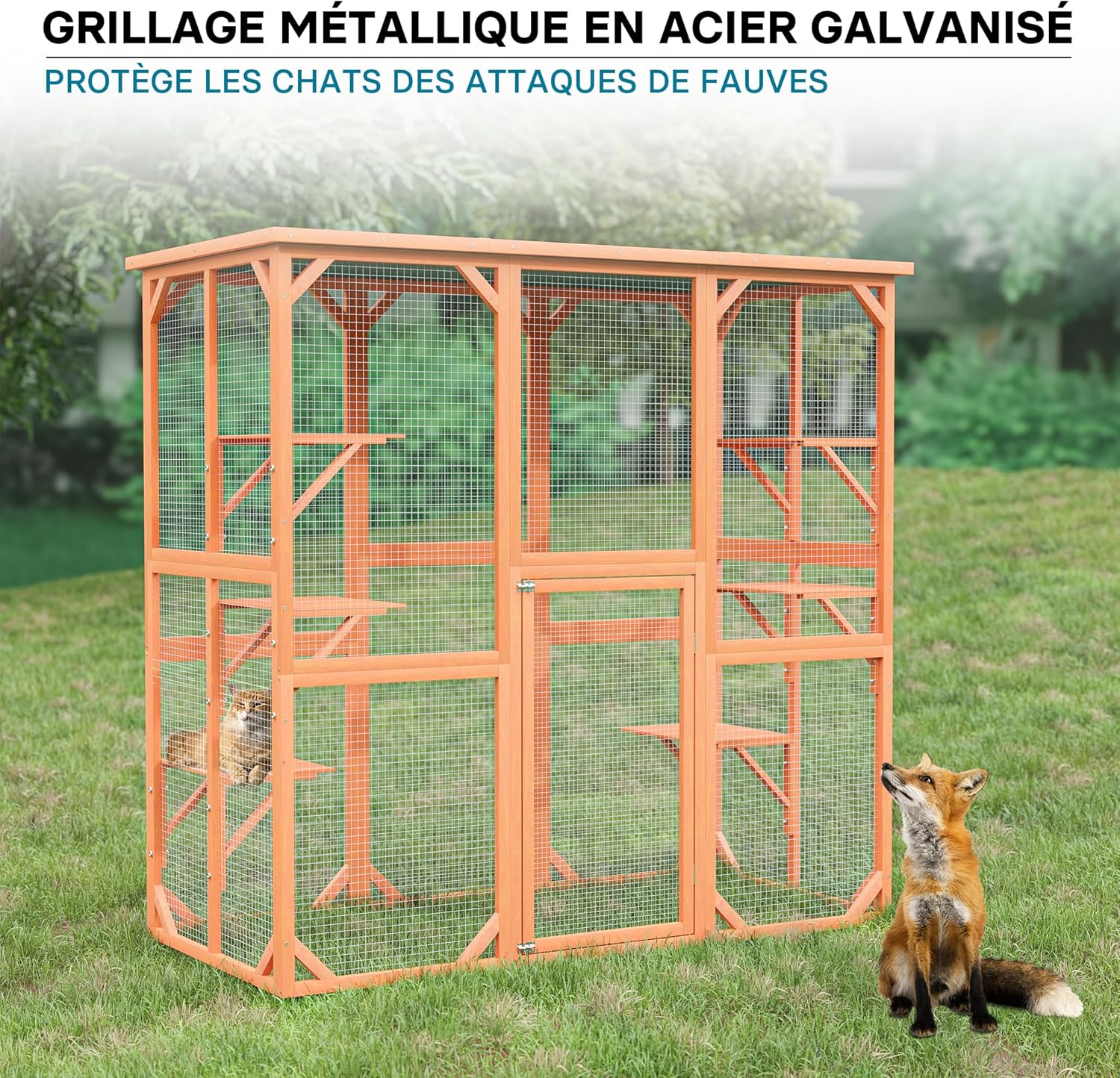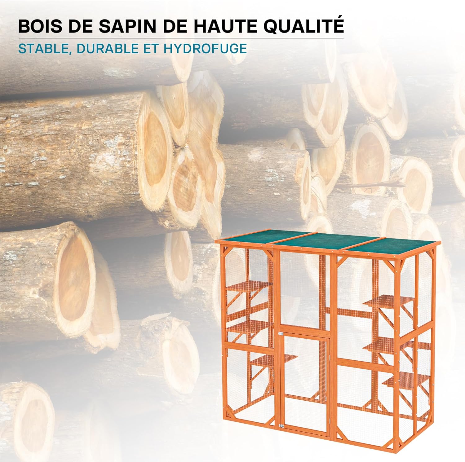 • Wiltec Outdoor Cat Enclosure 168 x 82 x 166.5 cm Made of Fir Wood and Wire Mesh Weatherproof Cat Playpen with 6 Resting Areas Felines