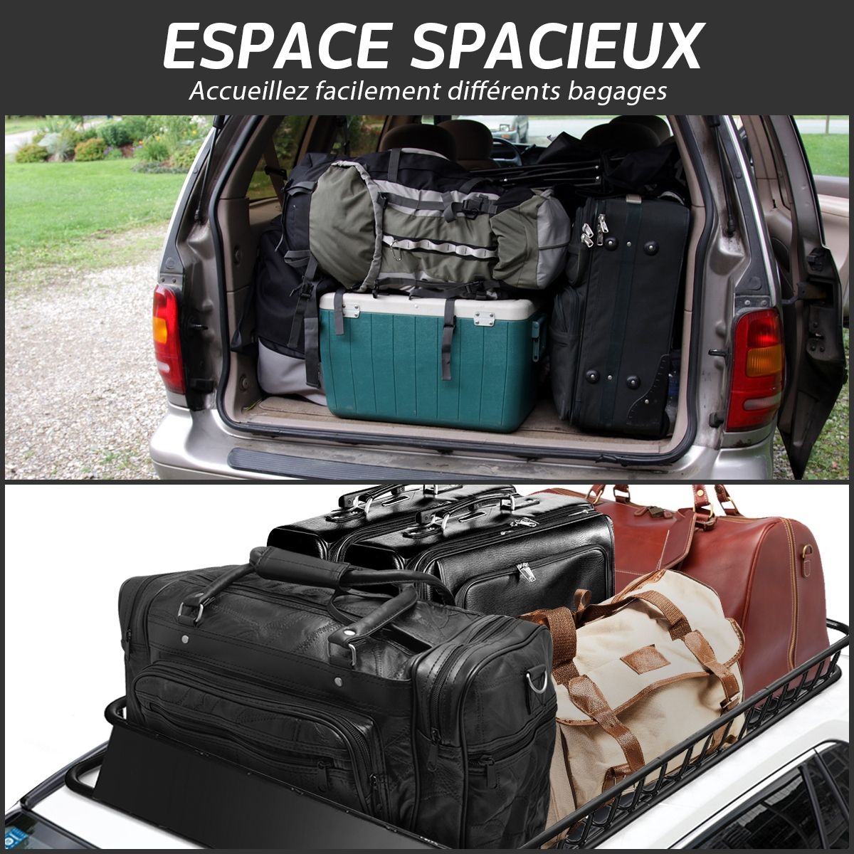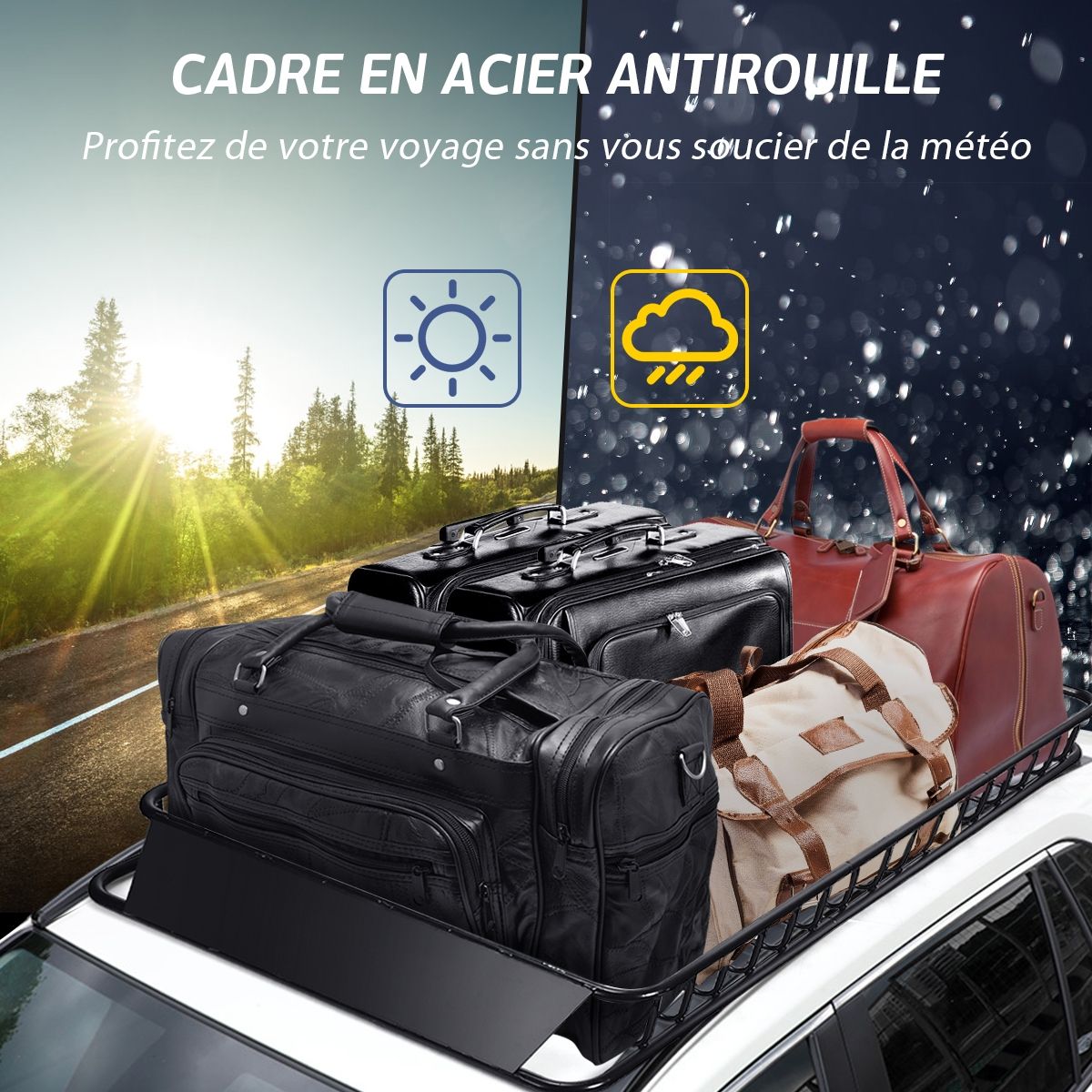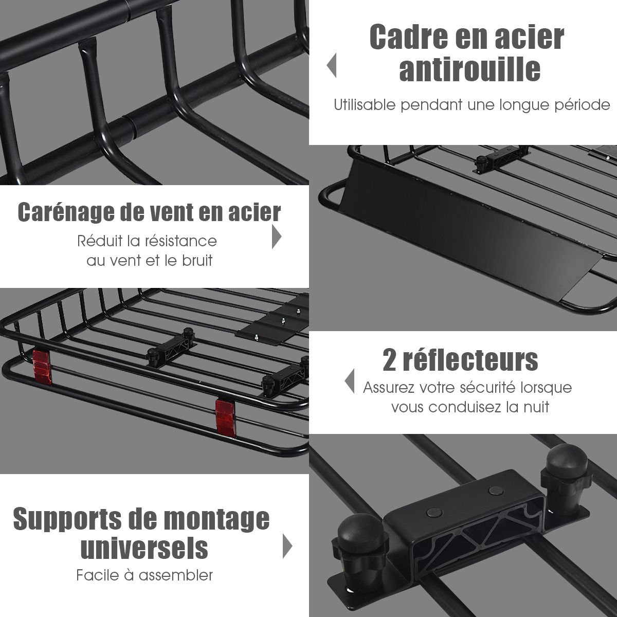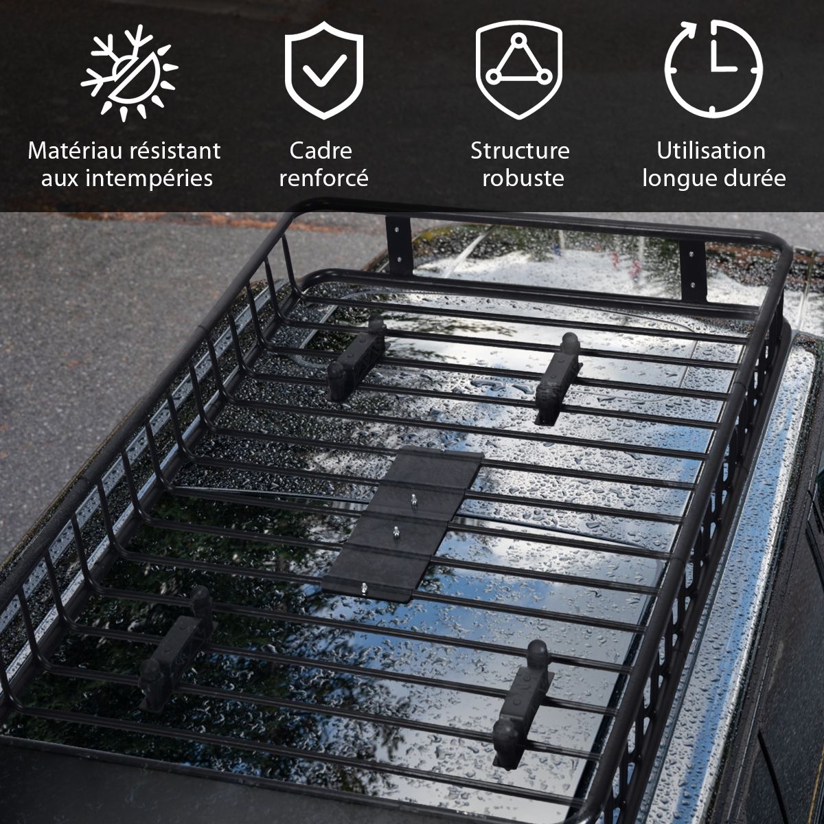 Our roof rack frees up interior space while providing a 68kg load capacity, making it ideal for storing luggage, gear, and equipment. This high-quality roof rack is durable, constructed from robust steel with a black coating for rust and scratch resistance. It features 15cm high side rails for securely holding items in place. Additionally, it includes a front spoiler to protect cargo from strong winds during driving, and two reflectors for enhanced safety at night. Product Features: Robust and Durable Construction The roof rack is constructed from robust steel with a coating to ensure durability, rust resistance, and scratch resistance. Thanks to its sturdy frame, our cargo basket can safely carry up to 68kg of cargo, appliances, or equipment. Enhanced Safety Design 15cm high side rails and a lower crossbar around the cargo basket ensure your luggage is safe on long journeys. The steel front spoiler is designed to reduce wind resistance, protect cargo from wind damage, and minimize noise. Ample Storage Space Family trips or off-road adventures require extra luggage. Our roof rack maximizes your space, giving you peace of mind when transporting large loads of gear. It frees up interior space for more luggage or passengers. Expandable and versatile, this roof rack comes in two different sizes to fit most vehicle models. The sturdy rack is ideal for camping gear, carrying extra bags, and more. Easy installation: Four universal U-bolts securely attach to the vehicle's crossbars, eliminating any worries about loosening. The roof rack can be extended from 115cm to 162cm in length. Robust and durable. Product features: Robust and durable. Constructed from robust steel for a stable structure. Premium coating for enhanced rust resistance. Large capacity for more items. 15cm side rails ensure the safety of your belongings. Steel fairing reduces wind resistance and noise. Two reflectors ensure safe driving at night. Ideal for carrying heavy loads and luggage on your travels. Expandable to meet different needs. Specifications: Color: Black; Material: Steel; Net Weight: 18.5 kg; Maximum Load Capacity: 68 kg; Dimensions: 162 x 99 x 15 cm (L x W x H); Includes: 1 x 162 cm roof rack, 1 x instruction manual.