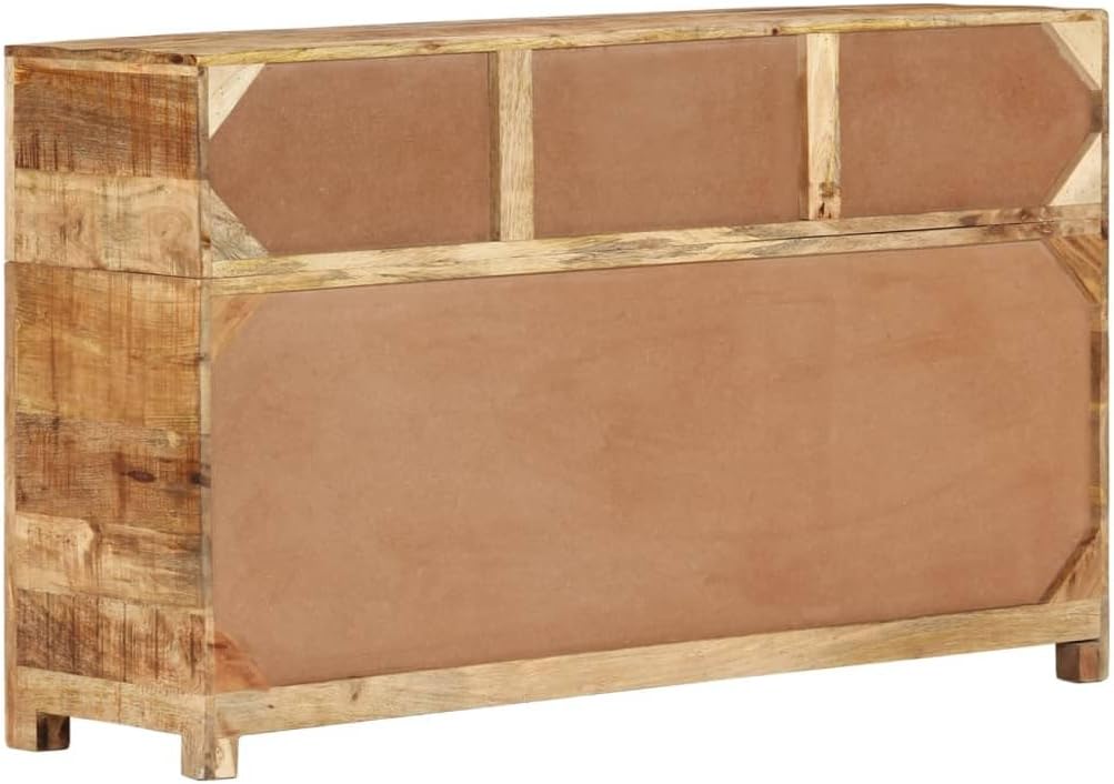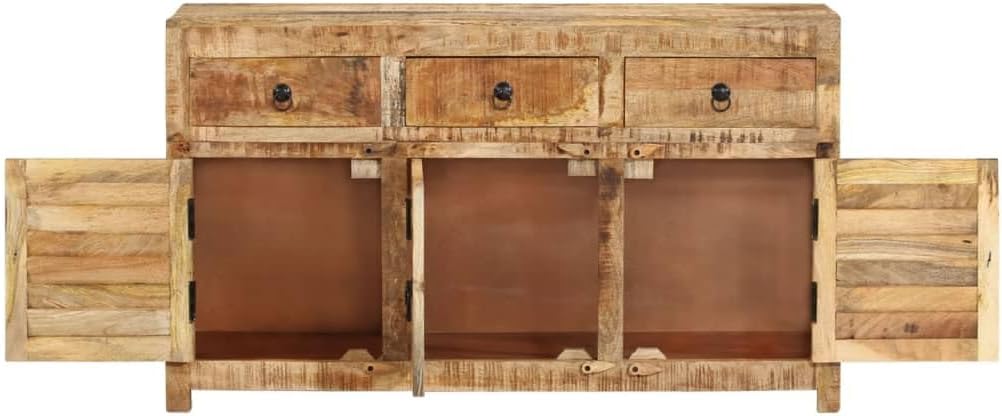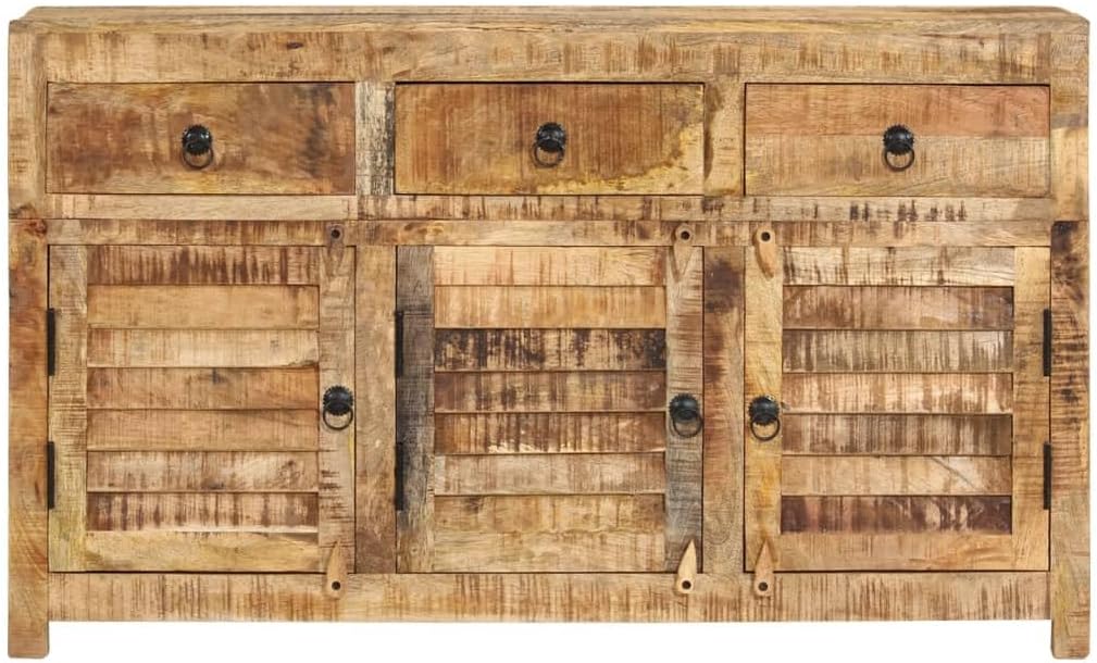If you're looking to add a touch of rustic charm to your interior decor, this wooden sideboard is the perfect choice. Handcrafted from sturdy solid mango wood, this cabinet is robust and stable, with exquisite craftsmanship giving it a unique vintage style. The thick countertop is ideal for displaying picture frames, vases, fruit baskets, or other decorative items. Furthermore, three drawers and three doors provide ample storage space, keeping your belongings dust-free and neatly organized. Important Note: The color of each product may vary slightly, making each sideboard unique; shipments are random. Product Description: If you're looking to add a touch of rustic charm to your interior decor, this wooden sideboard is the perfect choice. Handcrafted from sturdy solid mango wood, this cabinet is robust and stable, with exquisite craftsmanship giving it a unique vintage style. The thick countertop is ideal for displaying picture frames, vases, fruit baskets, or other decorative items. Furthermore, three drawers and three doors provide ample storage space, keeping your belongings clean, dust-free, and neatly organized. Important Note: The color of each product may vary slightly, making each of our sideboards unique. Shipment will be random. Material: Natural veneered solid mango wood. Dimensions: 110 x 30 x 65 cm (W x D x H). Assembly required.