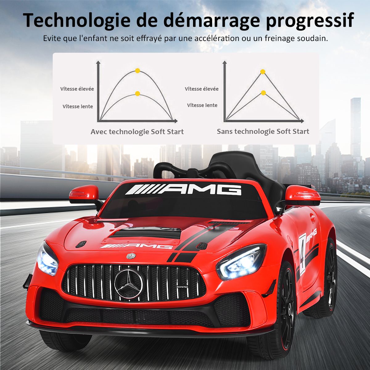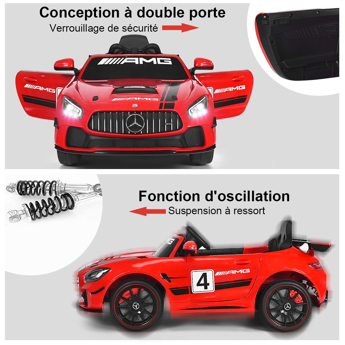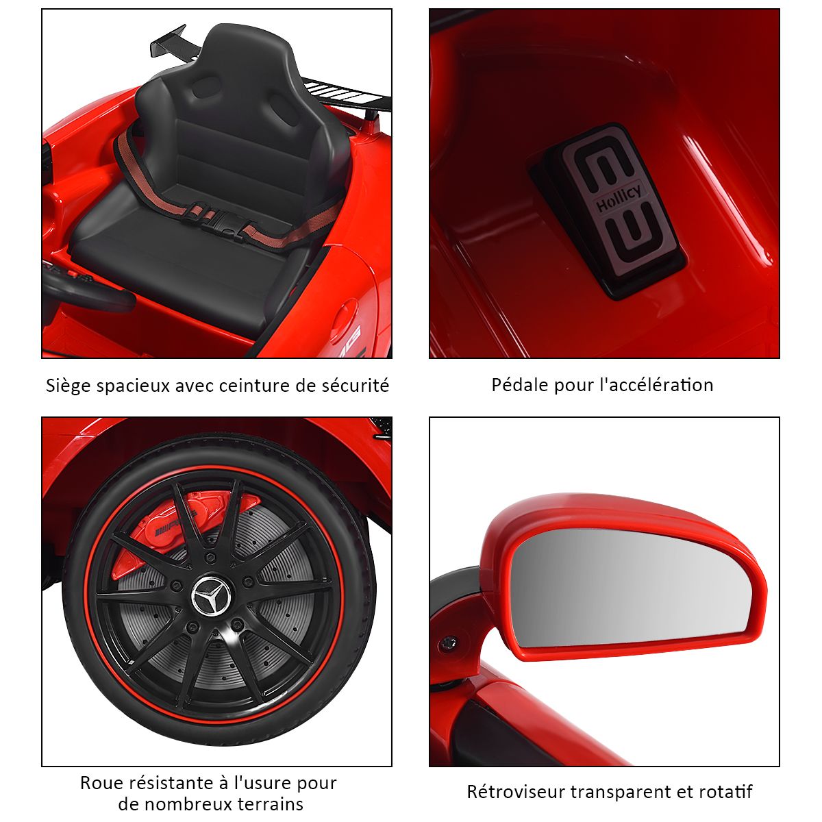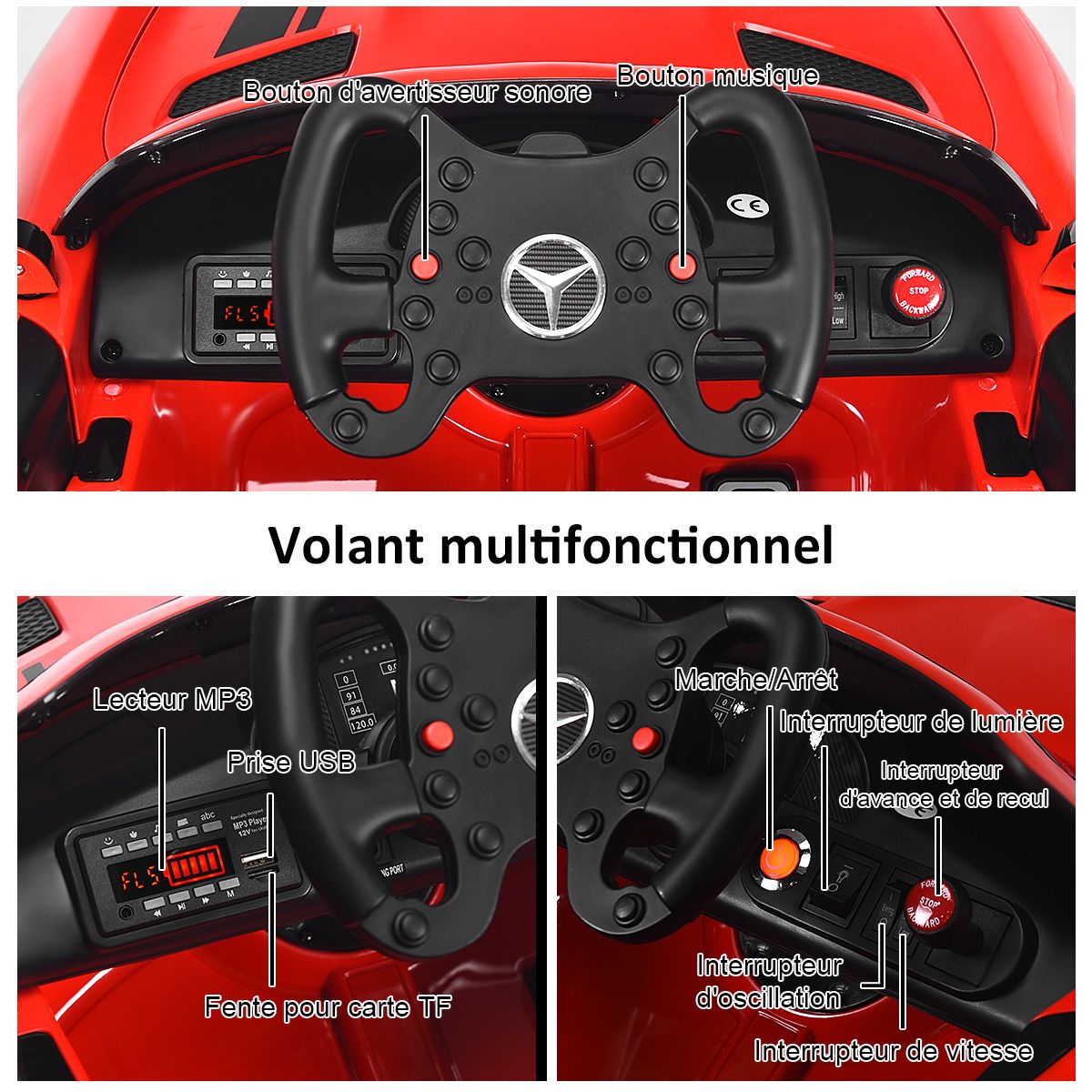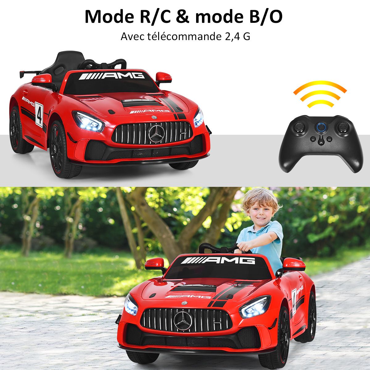 This brand-new Mercedes-Benz electric car is the perfect gift every child will love! Equipped with two motors powered by 12V batteries, it provides a fun driving experience for kids. It boasts realistic features that children will adore: an elegant design, an MP3 player, music and horn sounds, forward and reverse gears, on/off lights, and more. Children can drive it themselves, or parents can control it with the remote, enjoying the fun of driving. The one-button wheel assembly design makes assembly easy and convenient. Buy this electric car for your children and let them have healthy and happy playtime. Product Features: Two Modes 1. Parent Remote Mode: You can drive with your child using the 2.4GHz remote. 2. Battery Mode: Children will learn how to use the pedals and steering wheel to control this electric toy (pedal control for acceleration). Multiple Fun Functions: This electric car features a rocking function, forward and reverse gears, and 3 speeds adjustable via the remote. Children will enjoy the fun of driving independently, fostering independence. The MP3 music player is equipped with a USB interface and TF card slot, allowing you to connect mobile devices to listen to music or stories. Smooth Start, Safe and Secure: This electric vehicle features a spring suspension system for a smooth and comfortable ride. Four durable, leak-proof tires provide a more reliable driving experience. Furthermore, the smooth start function prevents children from being startled by sudden acceleration. Elegant and Realistic Appearance: This officially licensed Mercedes-AMG electric vehicle features bright front and rear lights and two doors with safety locks, delivering the most realistic driving experience. Its stylish appearance and elegant design are sure to be a favorite among children. Easy Assembly, a Perfect Gift for Kids: The wheels can be installed with just one button, making starting the vehicle a breeze. It will be a wonderful birthday or Christmas gift for a child. Dimensions: 116 cm x 58 cm x 46 cm (Length x Width x Height). Recommended Age: 37-95 months. Product Features: Officially licensed Mercedes-AMG luxury electric car; equipped with an MP3 player featuring a USB interface and TF card slot for connecting mobile devices to listen to music or stories; supports parental control mode and battery mode; 2.4GHz remote control for easy operation; spring suspension system and electronic brakes for safer driving; soft start function for smooth acceleration and reliable braking; one-button wheel assembly for convenient installation; rocking function for a new user experience; electric power steering wheel to prevent injury to baby's arm development; multi-function steering wheel with automatic return function; forward and reverse functions with 3 adjustable speeds via remote control; front and rear LED lights with music and horn; double doors with safety locks and front and rear LED lights; comfortable seat with seat belt, providing ample seating and play space; wear-resistant and explosion-proof tires that do not require inflation. Foldable handles and small wheels for easy movement. This toy car brings joy to children and encourages them to move. Suitable for children aged 37 to 96 months, maximum weight capacity 30 kg. Specifications: Color: Red; Material: PP (Polypropylene). Dimensions: 116 x 58 x 46 cm (L x W x H); Net weight: 15 kg; Maximum load: 30 kg; Speed: 3-5 km/h (2-5 mph); Charging time: 8-12 hours; Battery: 12V 7Ah; Motors: 25W x 2; Recommended age: 37-95 months. Package includes: 1 x electric stroller; 1 x 2.4G remote control; 1 x charger; 1 x user manual.