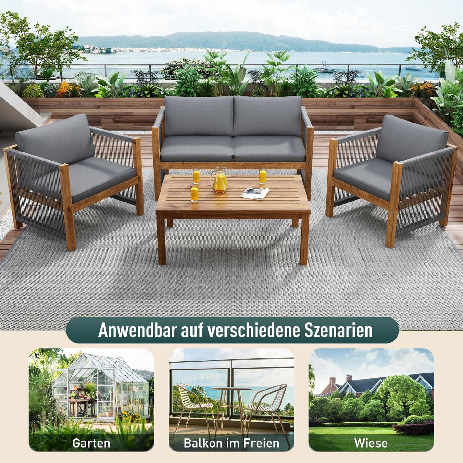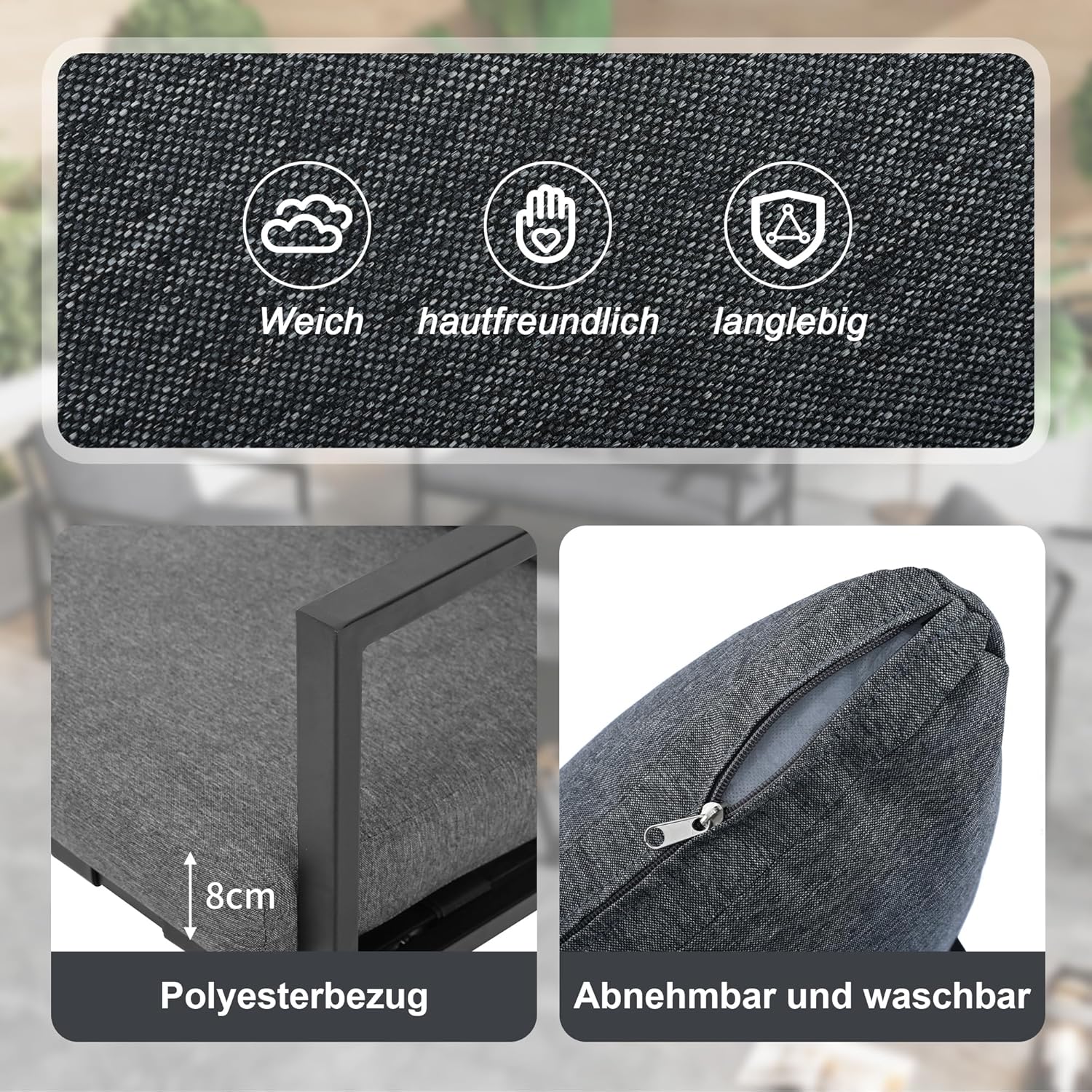 Garden Furniture Set, 4 Person Garden Furniture Set, with Sofa, Coffee Table and Cushions, Removable and Washable Fabric Cover, Black (Seat Cushions Included)