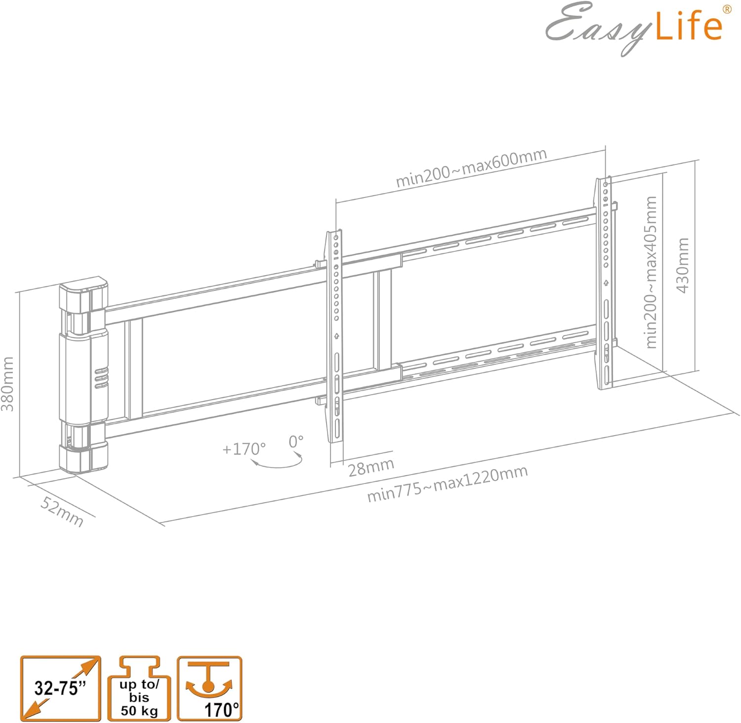 • EasyLife Electrically Swivel TV Wall Mount up to 170Spend, VESA Wall Mount up to 600x400 for LCD/OLED TVs, Monitors, Screens, Smartboards from 32-75 Inches & 50kg Max (White)