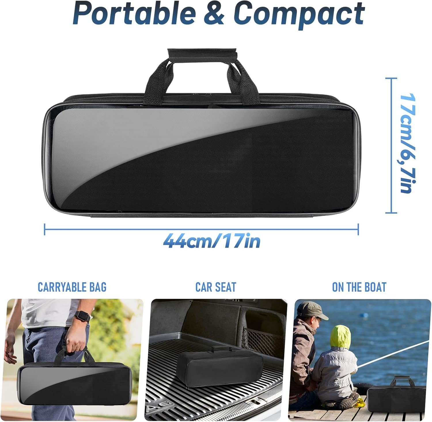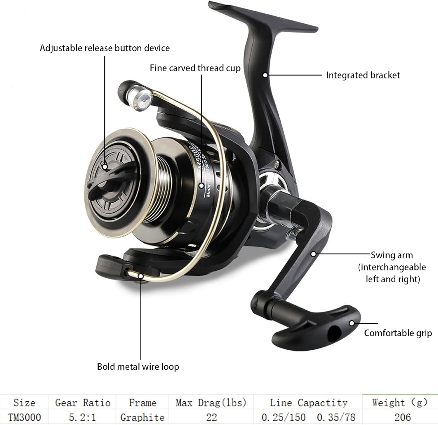 This set includes 2 fishing rods, 2 reels, various baits, 2 hooks, 2 fishing lines, and a tackle bag. This rod set eliminates the hassle of buying rods and reels separately, making it ideal for beginners. The telescopic rods are made of carbon fiber, combining flexibility and durability, allowing you to easily handle fish fights. The ergonomic EVA handle is comfortable and easy to grip, allowing for extended fishing sessions. The 15cm length also provides extra power. The TM3000 reel features a powerful aluminum spool and a folding design. The metal handle uses precision gears with a high gear ratio of 5.2:1, providing strong power. The reel arm is interchangeable to accommodate different user preferences. To enhance your fishing experience, we also provide a variety of essential fishing accessories, including baits and hooks, all stored in a tackle box. All tackle is packed in a sturdy tackle bag. This set can meet your fishing needs anytime, anywhere. This fishing rod is the perfect gift for Father's Day, Children's Day, birthdays, and Christmas, and is ideal for grandfathers, fathers, sons, and husbands. It's versatile and suitable for sea fishing, river fishing, lake fishing, and boat fishing. Available in 1.8-meter length. Suitable for both sea and boat fishing. Its foldable design makes it compact and space-saving, easy to carry. Ultra-lightweight and portable, it's ideal for travel and easily fits in a car trunk, boat cabin, or backpack.