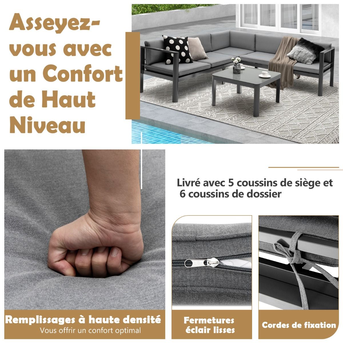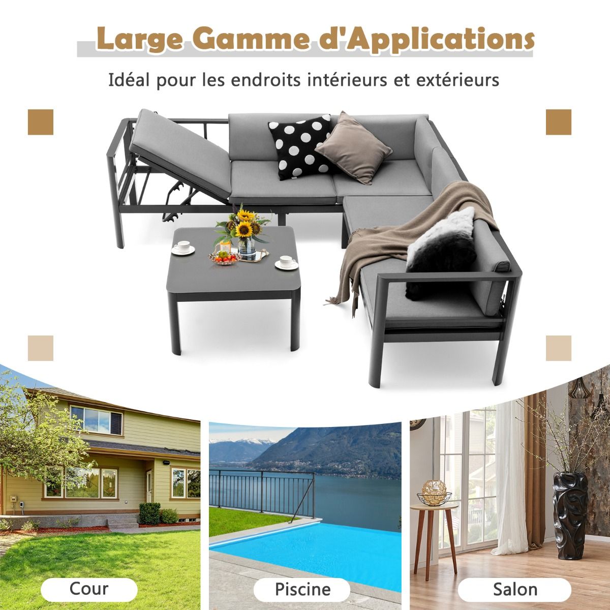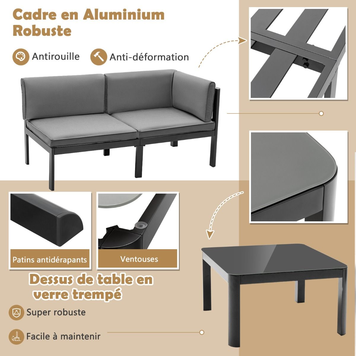 This three-piece aluminum alloy sofa set provides an ideal relaxation space both indoors and outdoors. Featuring a six-position adjustable backrest, this three-seater sofa offers not only ample seating space but also a comfortable reclining experience. High-density filled seat and back cushions make the seating softer and more comfortable. A zipper design allows for easy removal and cleaning of the cushion covers. Furthermore, a reinforced aluminum alloy frame ensures the stability of the three-piece sofa set. The tempered glass tabletop is secured with suction cups, making it smooth and easy to clean. In short, this modern aluminum alloy sofa set is the perfect choice for both indoor and outdoor activities. Product Features: Fully Functional Three-Seat Sofa This three-seater sofa is 214 cm long, providing ample seating space. Additionally, simply lift the left backrest to transform it into a comfortable recliner. The six-position adjustable backrest meets various needs. Comfortable Seating Cushions The sofa set comes with seat and back cushions. All seat cushions are filled with high-density material. The smooth zipper design makes the cushion covers easy to clean. A strap design prevents the cushions from shifting. Premium Materials: This outdoor sofa set is made of aluminum alloy, which is rust-resistant and deformation-resistant. Anti-slip feet protect floors from scratches. Additionally, the tabletop is made of tempered glass, making it sturdy, durable, and easy to clean. Suction cups securely hold the tabletop in place. Versatile: This complete outdoor furniture set features an elegant grey color scheme and a stylish, modern look. Its striking appearance makes it suitable for various occasions, such as backyards, poolsides, porches, and living rooms. [Three-Piece Set Delivery] This three-piece aluminum sofa set will be shipped in three packages, so delivery times may vary. The screw package for the entire set is included in the third package. Clear instructions help you assemble it more efficiently. Sturdy and Durable Features: Sturdy and durable. Will be shipped in 3 packages and may arrive in batches. The screw package for the complete set is in box #3. This three-seater sofa can be converted into a recliner with a six-position adjustable backrest. Elastic seat and backrest cushions provide comfortable seating. Zipper design makes it easy to remove and maintain the backrest cushions. Fixing straps securely hold the backrest cushions in place. Aluminum alloy frame for sturdiness and durability. Anti-slip pads prevent scratching floors. Tempered glass tabletop secured with suction cups. Suitable for various indoor and outdoor occasions. Easy to assemble, comes with clear instructions. Specifications: Color: Gray. Material: Aluminum, sponge, synthetic fiber. Three-seater sofa dimensions: 214 x 68.5 x 64.5 cm (L x W x H). Two-seater sofa dimensions: 133.5 x 63 x 64.5 cm (L x W x H). Coffee table dimensions: 69 cm; Sofa dimensions: 69 x 39 cm (L x W x H); Seat cushion dimensions: 67 x 63 x 8 cm (L x W x H); Large back cushion dimensions: 68.5 x 32 x 8 cm (L x W x H); Small back cushion dimensions: 55 x 32 x 8 cm (L x W x H); Seat height: 31.5 cm; Three-seater sofa net weight: 20 kg; Two-seater sofa net weight: 13 kg; Coffee table net weight: 8.5 kg; Three-seater sofa load capacity: 450 kg; Two-seater sofa load capacity: 300 kg; Coffee table load capacity: 50 kg; Package contents: 1 x Three-seater sofa, 1 x Two-seater sofa, 1 x Coffee table, 5 x Large back cushions, 1 x Small back cushion, 5 x Backrest cushions, 1 x Instruction manual
