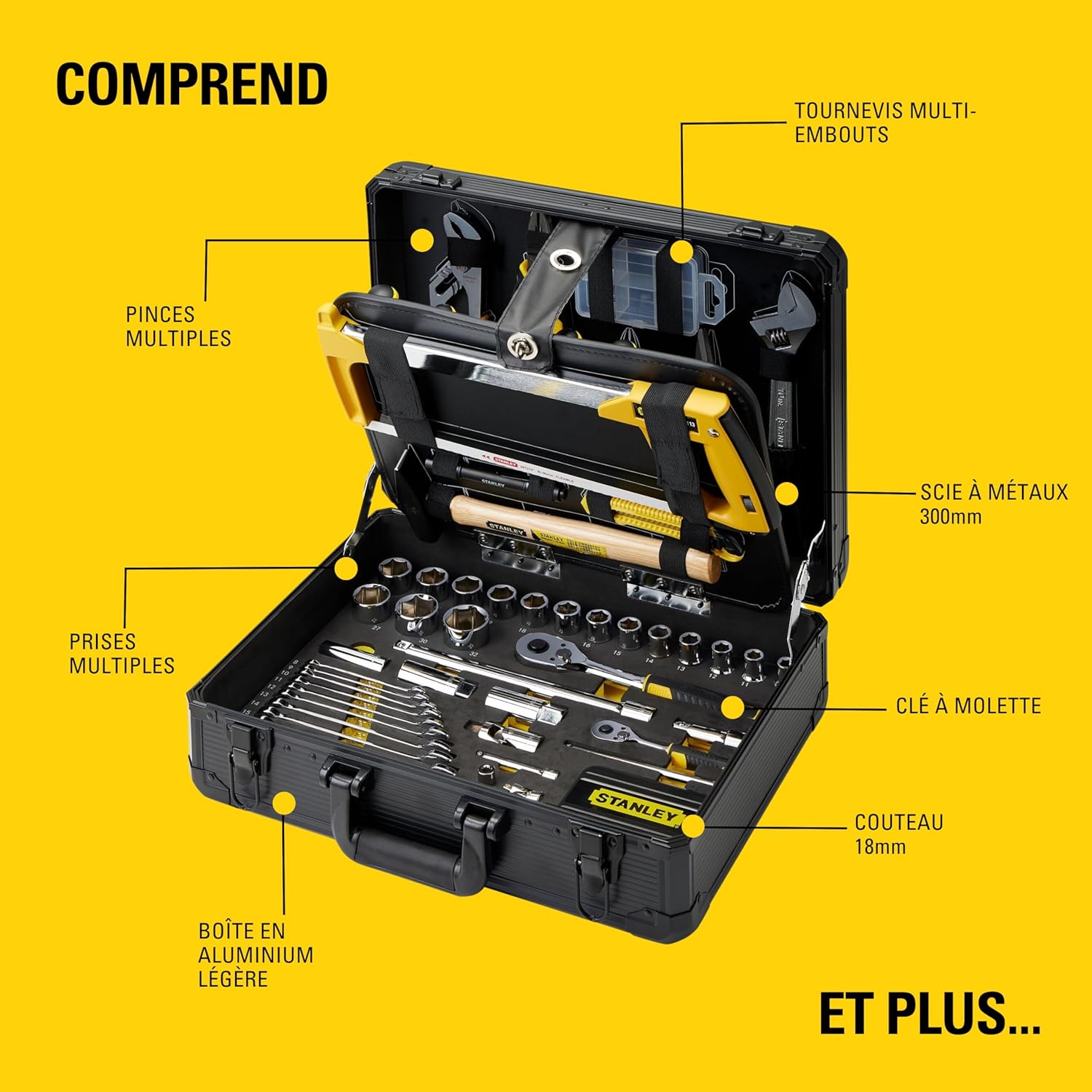 STANLEY 142-Piece Maintenance Case - Pliers and Cutters, Adjustable Wrench, Level, Measuring Tool, Screwdriver, Hacksaw, Utility Knife, Hammer, Screwdriving Tools STMT98109-1