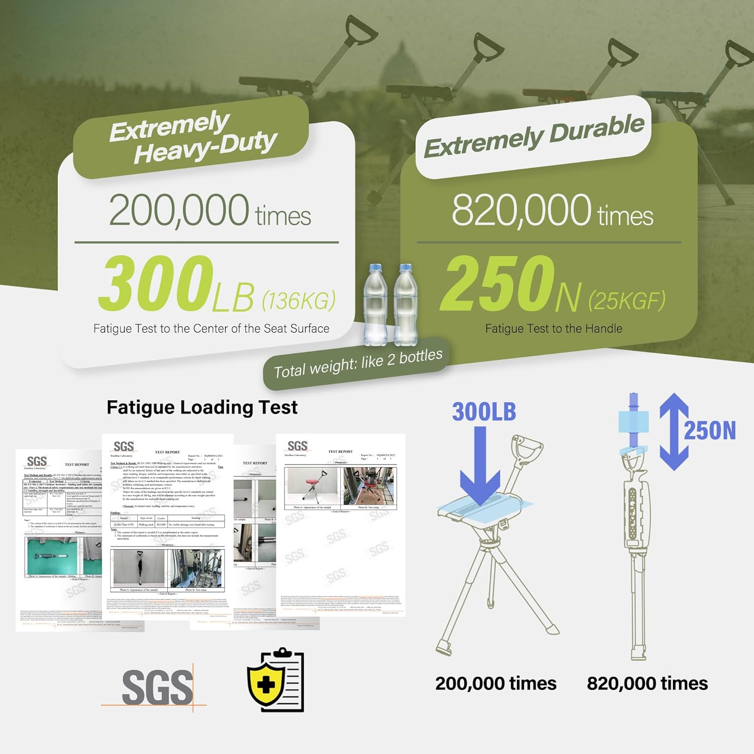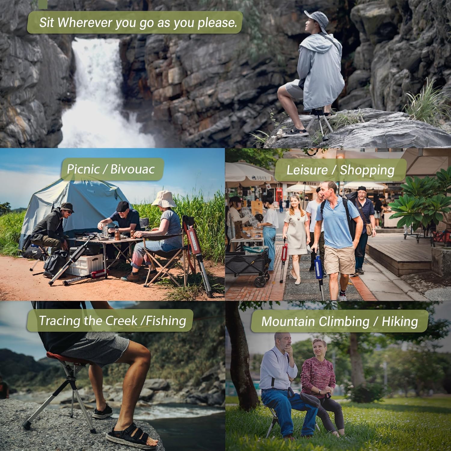 Anytime, Anywhere Whether hiking, camping, waiting in line, or traveling, the Ta-Da Chair Series 2 walking stick transforms into a forward-leaning tripod in seconds, ideal for soothing tired legs. Lightweight and Sturdy This aerospace-grade aluminum alloy walking stick seat weighs only one kilogram and has undergone rigorous strength testing to withstand repeated loads of up to 136 kilograms (compliant with European Standard EN 581 and SGS certified). Easy to Use Thanks to its push-button umbrella-like design, the walking stick transforms into a stable tripod in seconds, measuring 23 cm x 26 cm, and automatically locks at an ergonomic height of 50 cm. Thoughtful Design The D-shaped handle with straps ensures a comfortable grip; non-slip rubber feet provide stability on wet or slippery surfaces. Includes a storage bag. Suitable size - The Ta-Da Chair Series 2 is available in three lengths: 82 cm (suitable for heights 150~165 cm), 87 cm (165~178 cm), and 92 cm (178~192 cm). Note: These figures are approximate and may not apply to all body types. Maximum weight capacity is 136 kg.