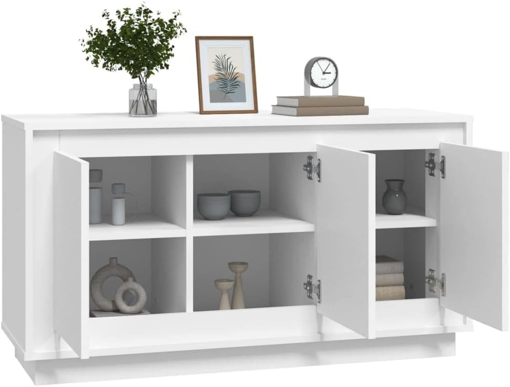 This classic sideboard boasts a timeless design, making it an ideal choice for your home. [Durable Material:] Made of high-quality engineered wood, it features a smooth surface, is sturdy and durable, highly stable, and moisture-resistant. The cabinet body is constructed from engineered wood and can be easily cleaned with a damp cloth. [Ample Storage Space:] Equipped with 6 shelves, this sideboard offers ample storage space for various everyday items, ensuring easy organization and access. [Display Function:] The top shelf is perfect for displaying decorative items, photo albums, or small plants. [Convenient Cabinet Doors:] Items can be concealed behind the cabinet doors, effectively preventing dust accumulation. Product Introduction: This classic sideboard boasts a timeless design, making it an ideal choice for your home. Durable Material: Made of high-quality engineered wood, it features a smooth surface, is sturdy and durable, highly stable, and moisture-resistant. The cabinet body is constructed from engineered wood and can be easily cleaned with a damp cloth. Large Storage Capacity: This sideboard features 6 shelves, providing ample storage space for various everyday items, keeping them organized and easily accessible. Display Function: The top space of the cabinet is perfect for displaying decorative items, photo albums, or small plants. Convenient Cabinet Doors: The cabinet doors effectively conceal items and prevent dust from entering. Helpful Tips: Each product comes with assembly instructions for easy assembly. Warning: To prevent tipping, this product must be secured to a wall using the included wall fasteners. Color: White Material: Particleboard Dimensions: 102 x 35 x 55 cm (W x D x H)