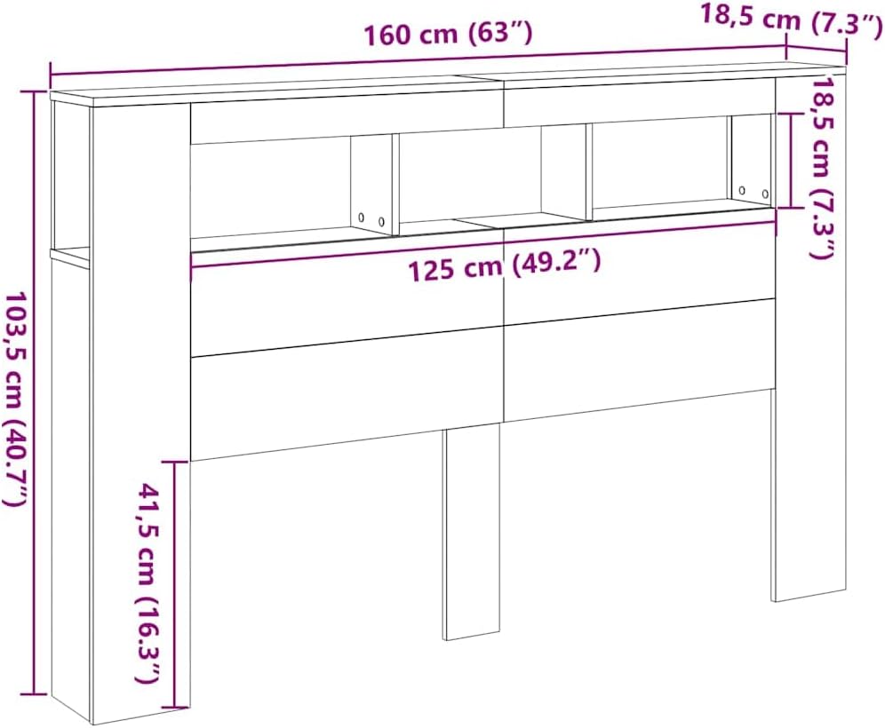 This classic LED headboard boasts an elegant design, adding a stunning modern touch to your bed frame and perfectly complementing any bedroom style. Made from high-quality engineered wood with a smooth surface, it offers strength, stability, and moisture resistance. The headboard features vibrant RGB LED lights. Multiple customizable menus allow you to easily change the light color and even set an automatic mode. These LED lights not only enhance the modern look of the headboard but also add to its stylish appeal. Superior Support: The headboard provides excellent back support when you sit up in bed to read or watch TV. Stable Top: The headboard features storage space at the top, perfect for displaying your decorative items, picture frames, and alarm clock. This classic LED headboard boasts an elegant design, adding a stunning modern touch to your bed frame and perfectly complementing any bedroom style. Durable Material: Made from high-quality engineered wood with a smooth surface, it offers strength, stability, and moisture resistance. RGB LED Lights: The headboard features vibrant RGB LED lights. Multiple customizable menus allow you to easily change the light color and even set an automatic mode. These LED lights not only enhance the modern feel of the headboard but also add to its stylish appeal. Excellent support: The headboard provides excellent back support when you sit up in bed to read or watch TV. Stable top: The headboard top with storage space is perfect for displaying your decorative items, picture frames, and alarm clocks. Note: This product only includes the LED headboard; the bed frame and mattress are not included. You can purchase matching bed frames and mattresses in our store. This product has a USB port and requires a certified 5V USB power supply (not included). Caution: To prevent tipping, this product must be used with the included wall anchors. Color: Antique wood grain Material: Particleboard Dimensions: 160 x 18.5 x 103.5 cm (W x D x H) Assembly required: Yes